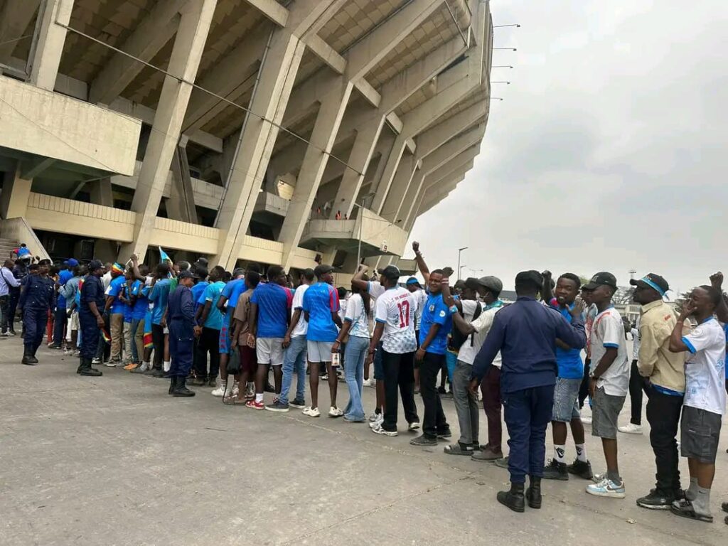 Malgré l’absence du chef de l’État, l’ambiance est déjà électrique à Kinshasa. Des milliers de supporters congolais ont investi les abords du stade depuis la matinée, arborant maillots, drapeaux et tambours, déterminés à pousser les Léopards vers l’exploit. Chants, vuvuzelas et danses ont transformé l’enceinte mythique en un véritable volcan prêt à entrer en éruption au coup d’envoi.