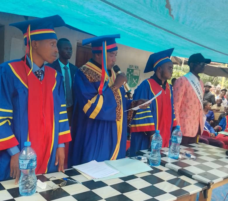 Organisée devant le bureau administratif de l’ISP Kamana, la double cérémonie de collation de grades et clôture de l’année académique, a réuni plusieurs autorités locales, parmi lesquelles le chef de secteur de Bekalebwe, Jean Claude Kapanga Ndjabintu, des membres du conseil de sécurité locale, ainsi que des familles venues soutenir les diplômés.