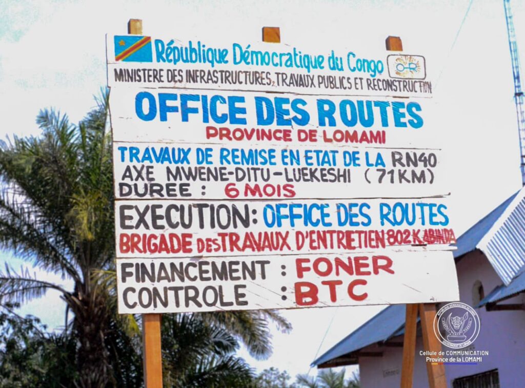 Financés à hauteur de 50 % par le Fonds National d’Entretien Routier (FONER), ces projets concernent la lutte antiérosive au site Néo situé au PK 7+250 de la RN40 Mwene-Ditu – Luekeshi, la remise en état du même tronçon jusqu’à la limite avec le Kasaï Central, l’entretien de la route provinciale Kabinda–Kamende – Mifunse–Ejiba–Mani, ainsi que la réhabilitation du pont Ekuluyi d’une portée de 12 mètres.